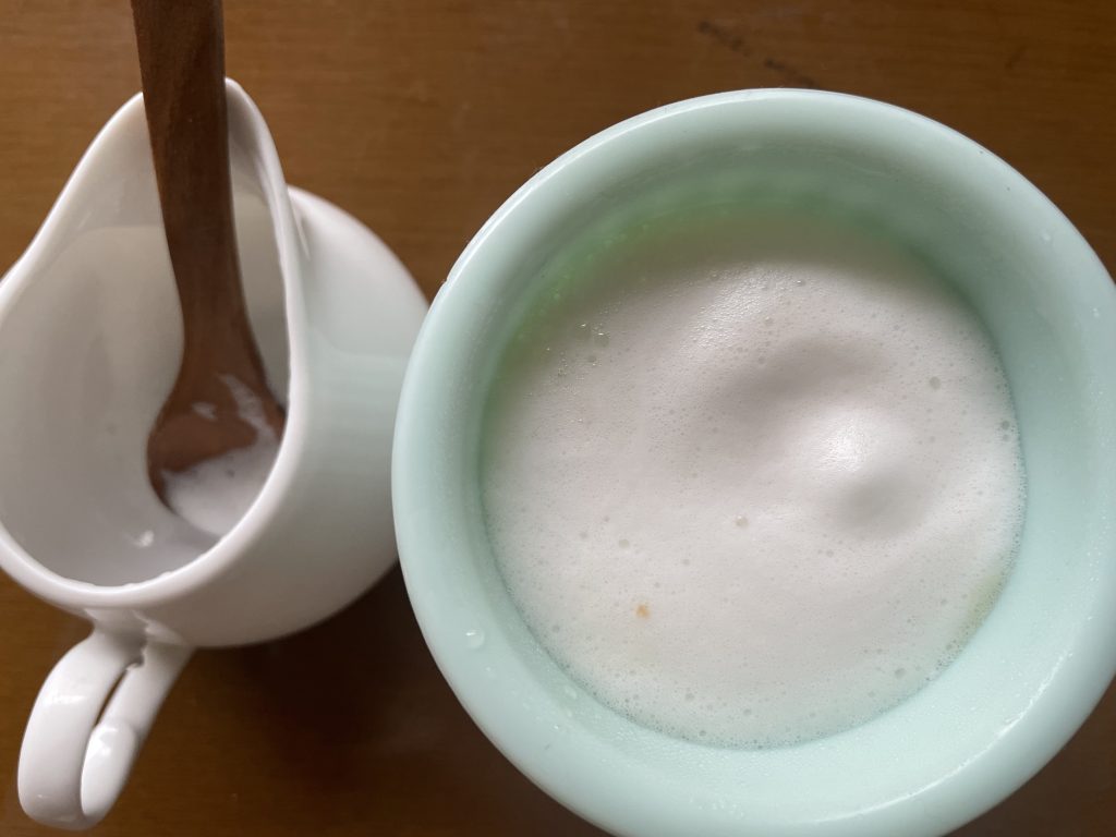 3.温めたミルクをフォーマーで泡立てる。フォーマーがない場合は、密閉できる容器に入れて泡立つまでシャカシャカ振る