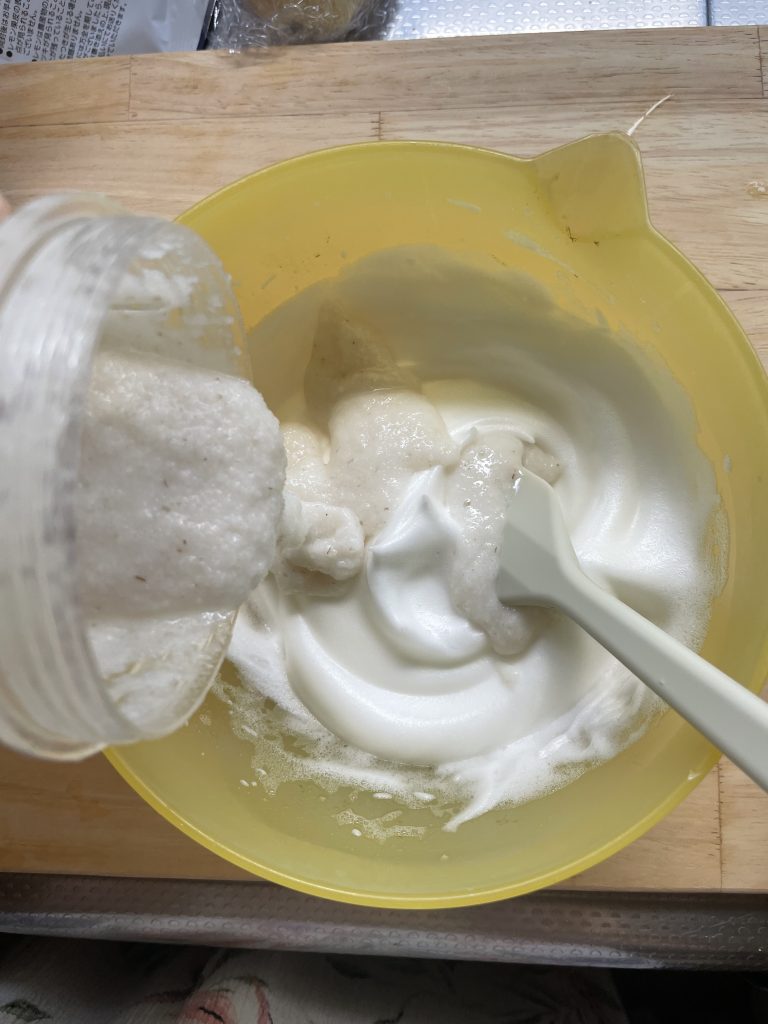 3.2へご飯のペーストを入れてさっくりと混ぜていく